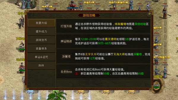 注:新区最高等级限制55级,合区后最高等级限制65级。