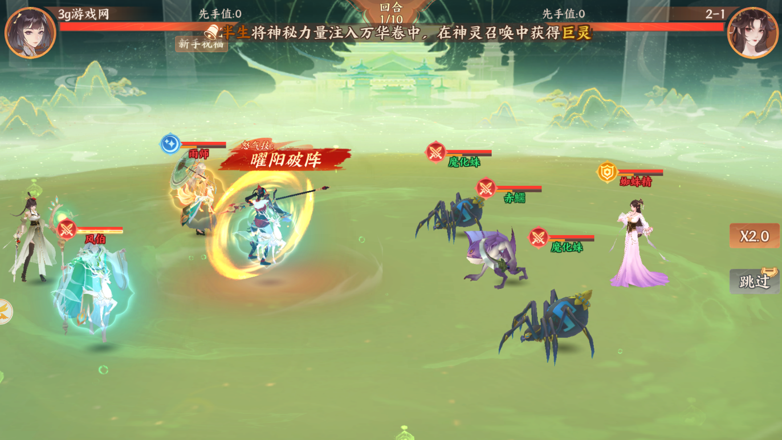 2、强力的合击技能:众多神灵与您一同战斗,同时上阵即可触发合击技能,增强伤害力以斩妖除魔!