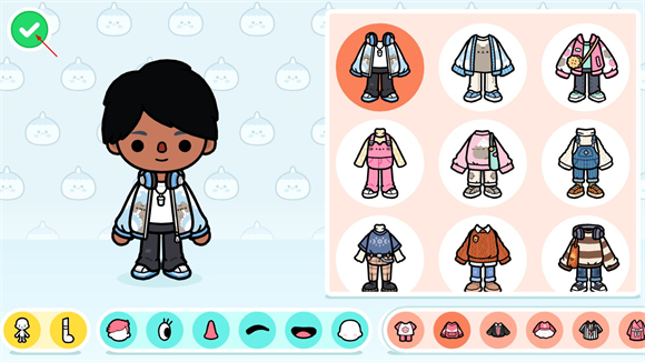 4、自由点击来更换你的角色形象,全部选好后点击左上角的绿色按钮进行保存。