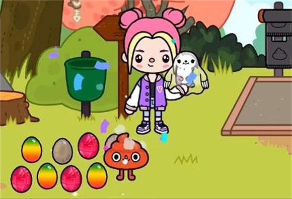 2、来到托卡宠物公园,然后拉动一根挂在树上的绳子,每次拉动都会出现一个蛋,最多有九个,点击这些蛋可以孵化出不同的物品,其中一个蛋会孵化出一个幽灵。