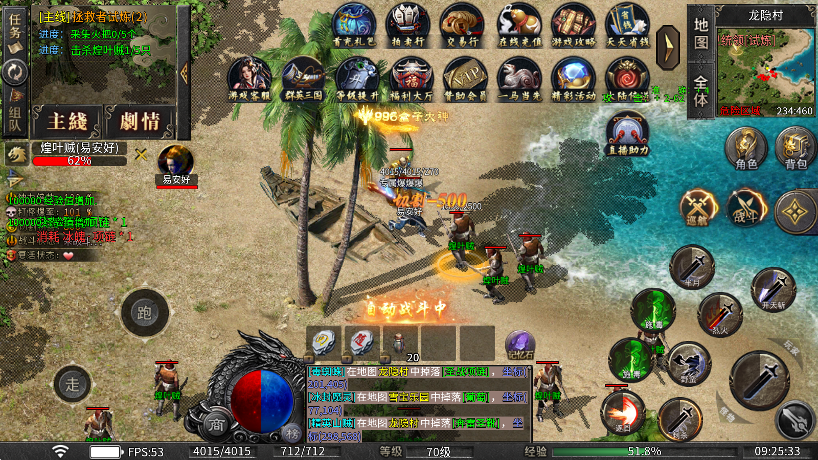2、白、绿、橙、红四色死忠极品专属装备可自由搭配,更有四大追梦神器静待你来爆出,地图内任意怪物均有几率掉落。
