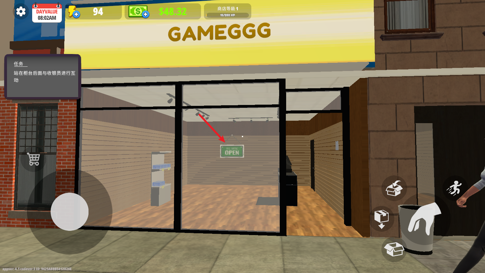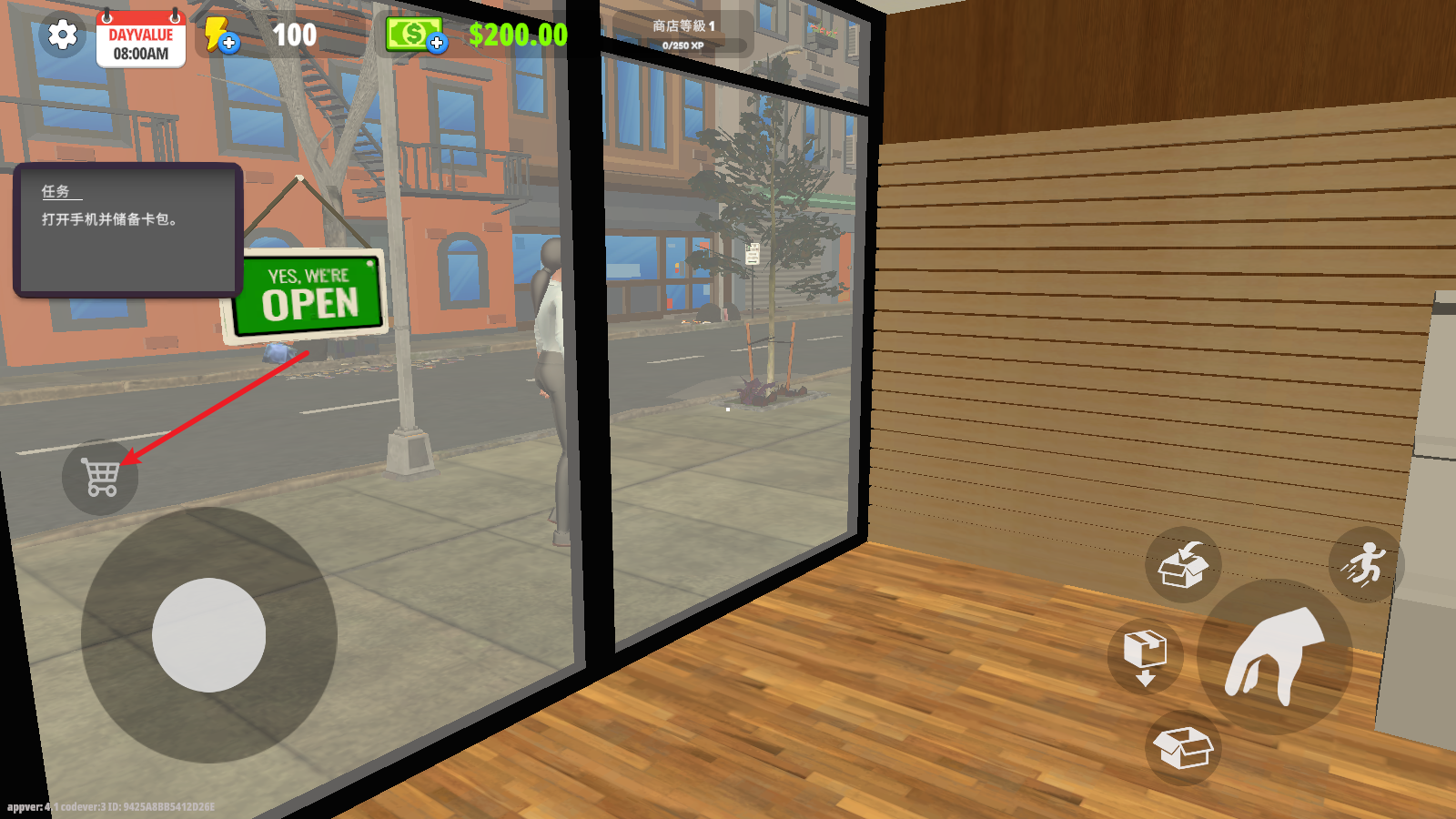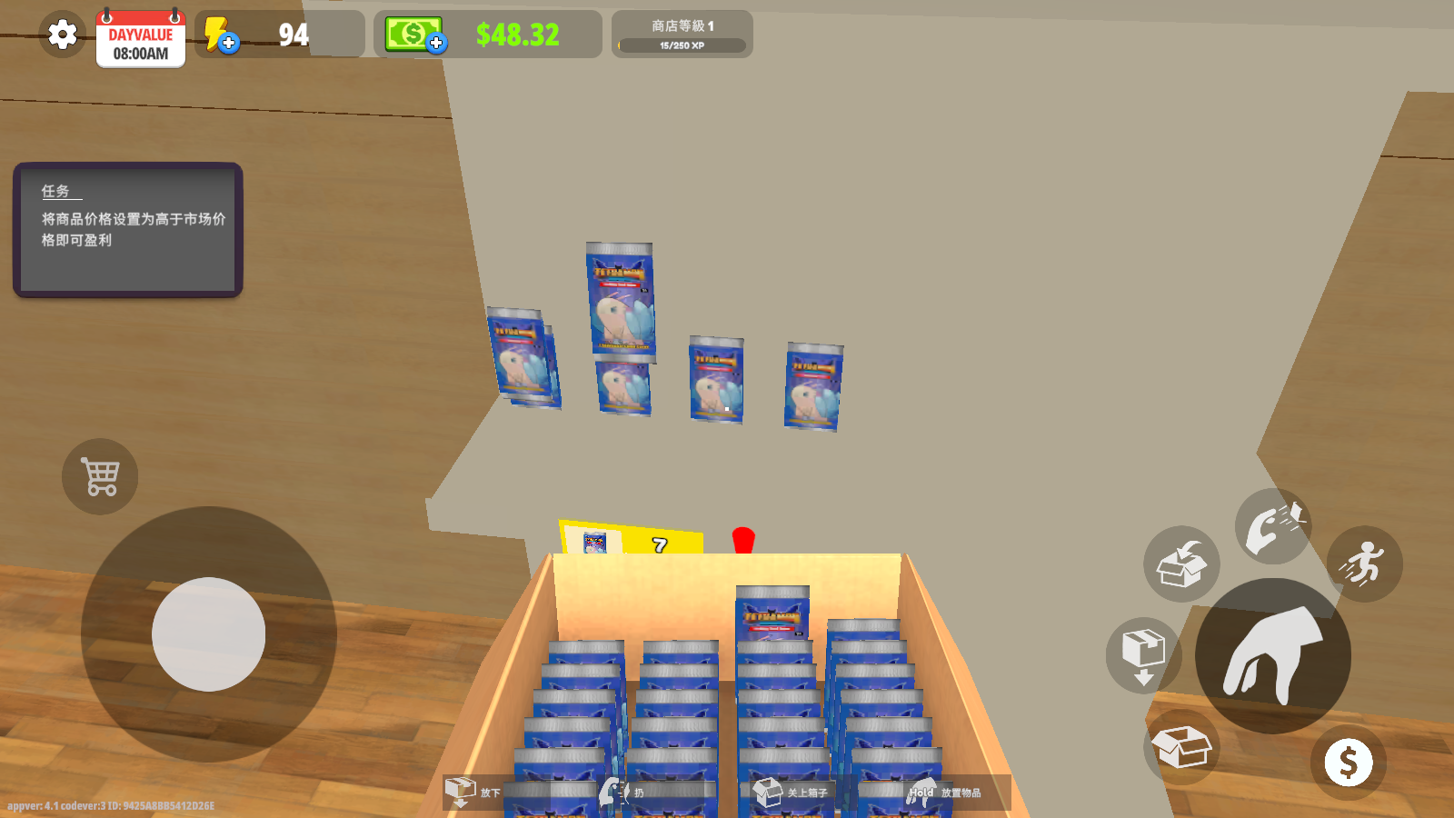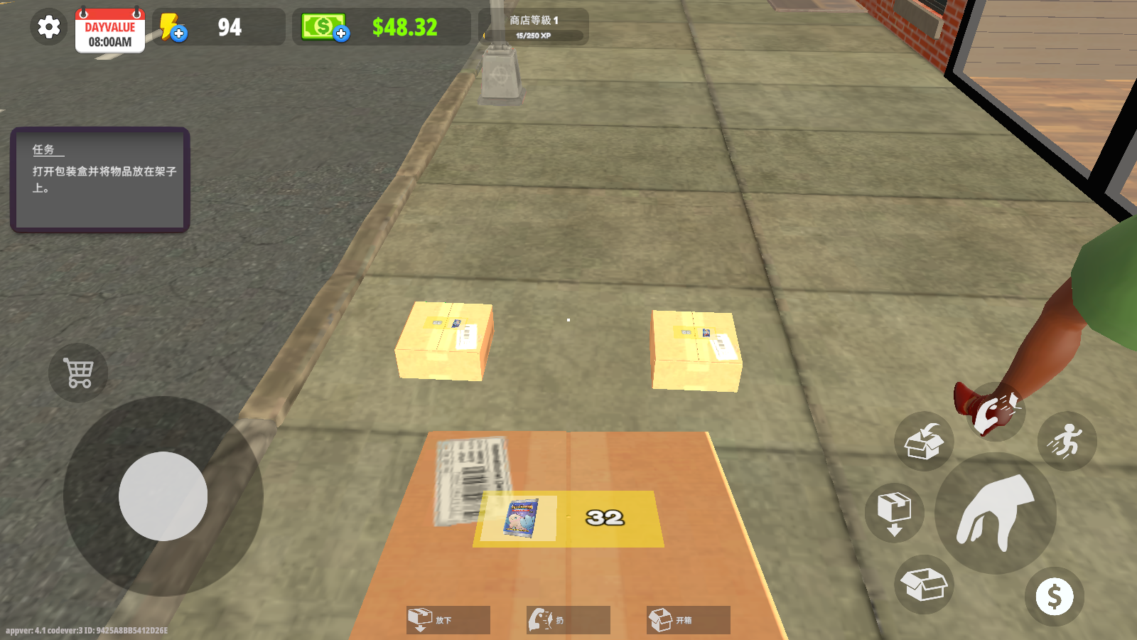 1、进入游戏后通过左侧的摇杆控制移动,右侧则是一些功能键,例如拆盒、扔掉物品等。