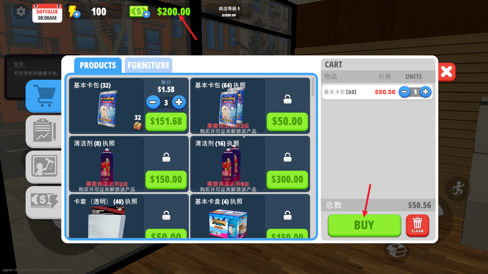 2、时刻关注卡牌的市场情况,通过进购热门的卡牌包来获得更高的销售量,灵活的调整库存已获得更高利润。