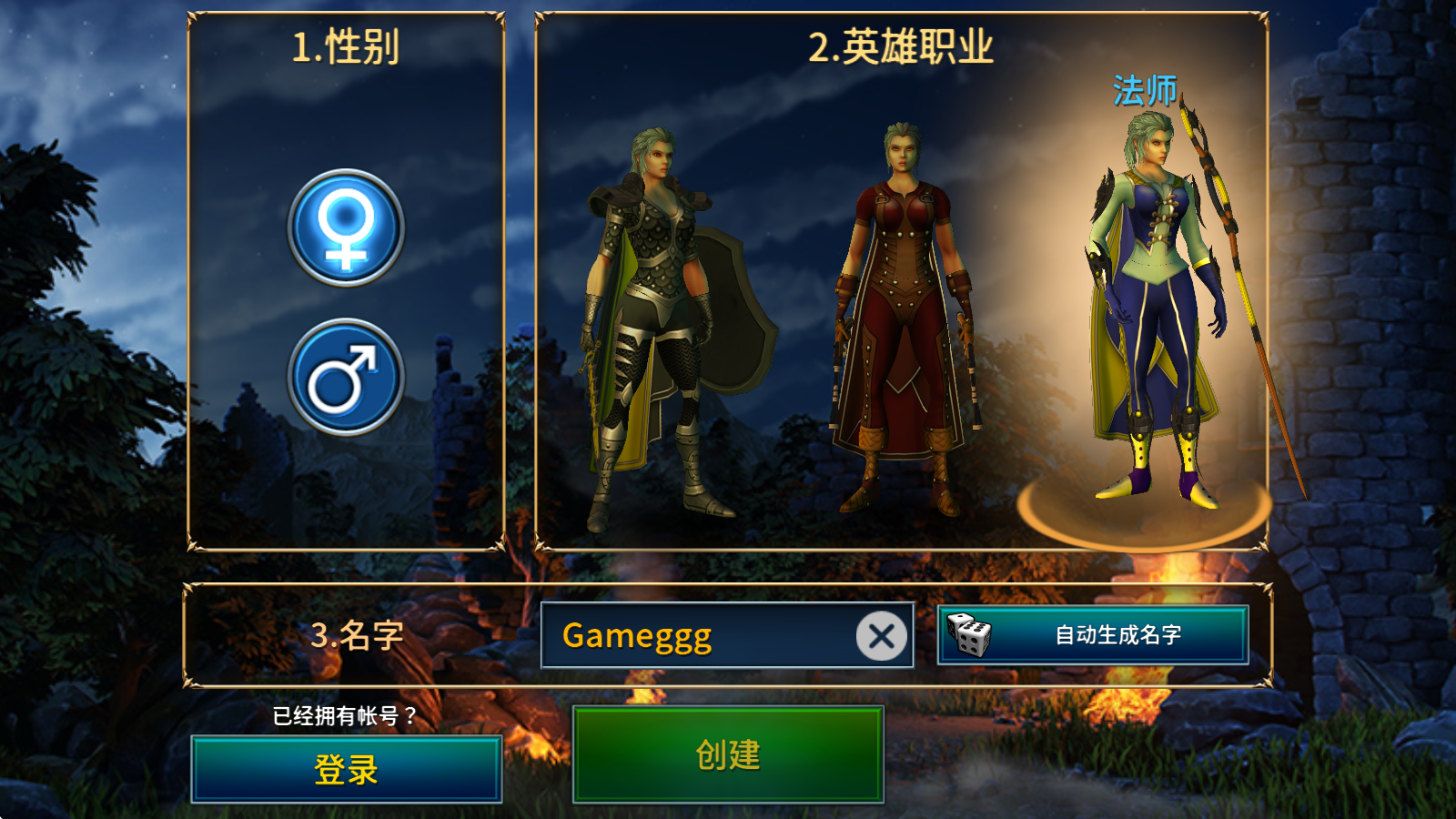 1进入游戏后,我们得创建一个角色,这里有三种职业可供挑选呢。
