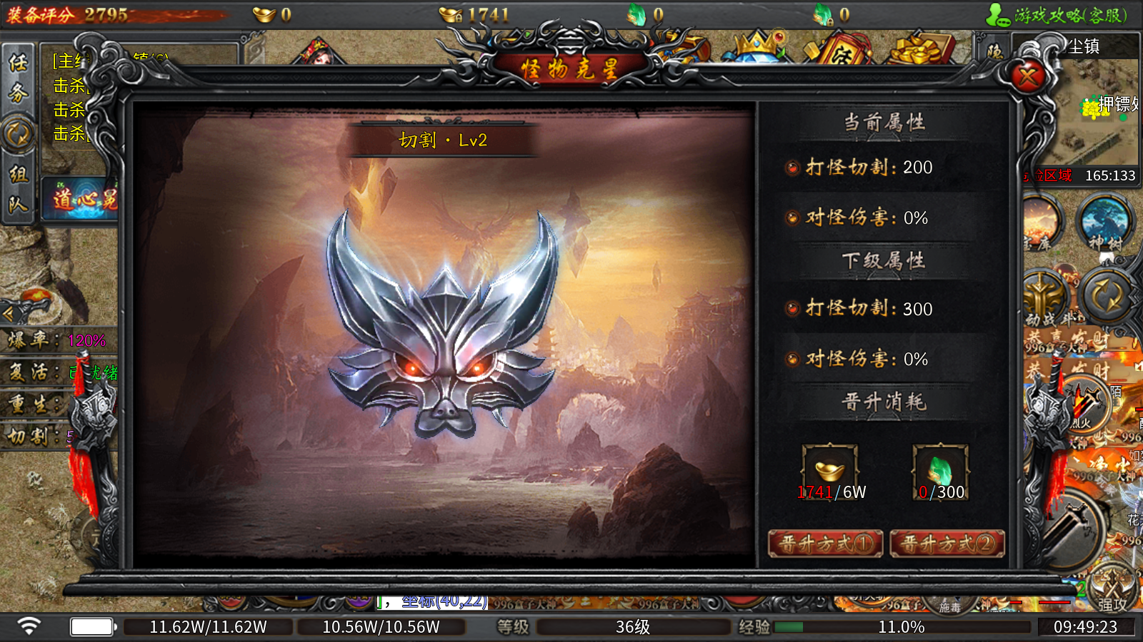 3“魔物猎手”系统可通过消耗元宝或灵石提升等级,每次升级都能增强对怪物的切割伤害效果;当等级累积到特定阶段时,还将解锁额外的对怪伤害加成属性。