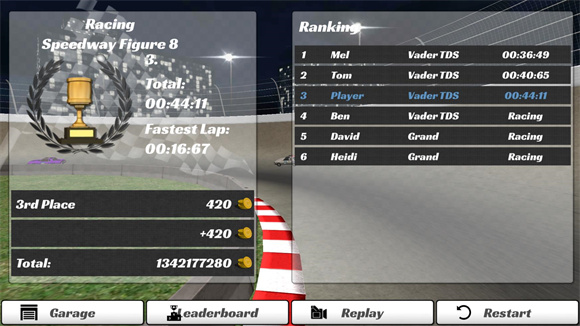 5、驾驶车辆超越对手完成圈数,抵达终点就可以完成比赛,完成比赛后会根据名次来获得金币奖励。