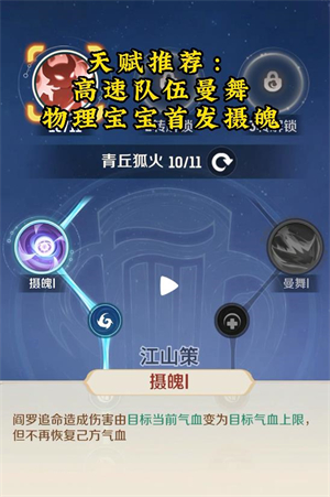 2、盘丝:高速队伍可选择曼舞天赋,物理阵容队伍则首选摄魂天赋。