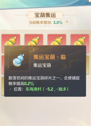 3在东海渔村的特定坐标位置,有一个名为集运宝葫临的地点,其具体方位是(-5.2,-10.9)。