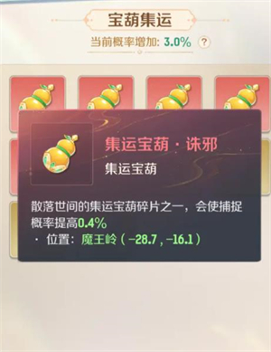 1第十个是集运宝葫诛邪,它所在的地点是魔王岭,具体坐标为(-28.7,-16.1)