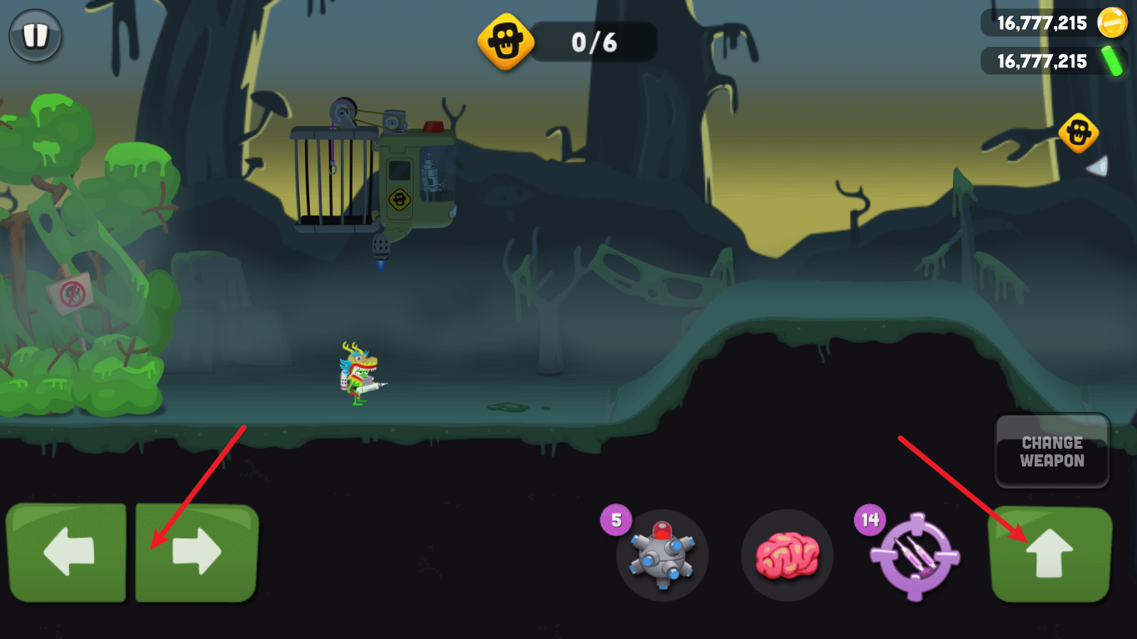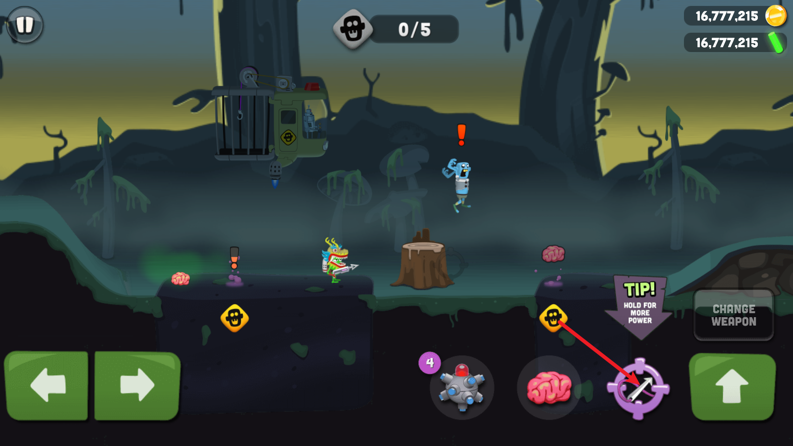 2、点击右侧黑色的按钮,可以切换自己的武器,一个是抓捕的爪子,另一个则是有使用次数的武器。
