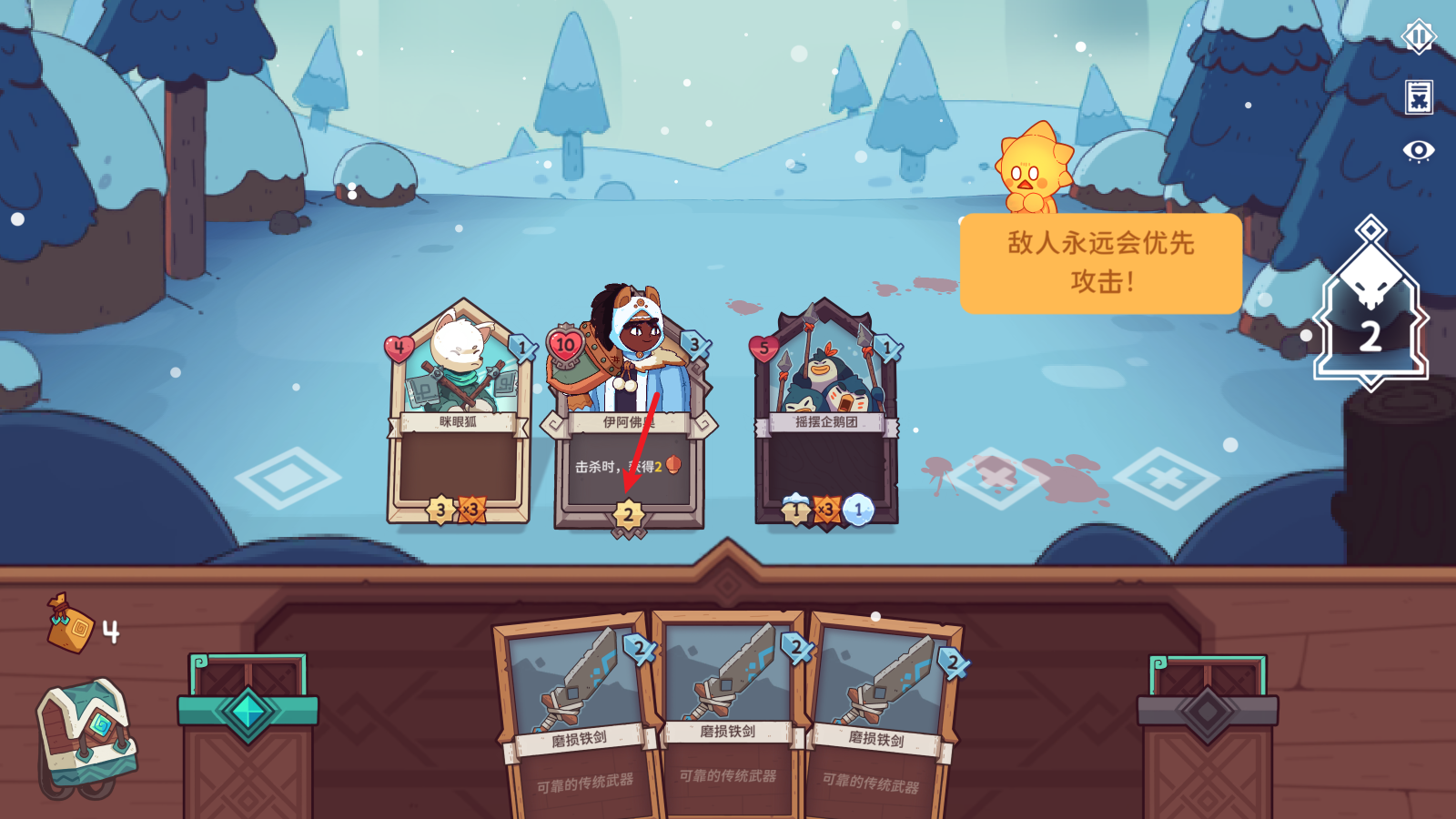 5、领主和伙伴需要等到卡牌下的数字为零才能攻击,并且总是敌人优先攻击。