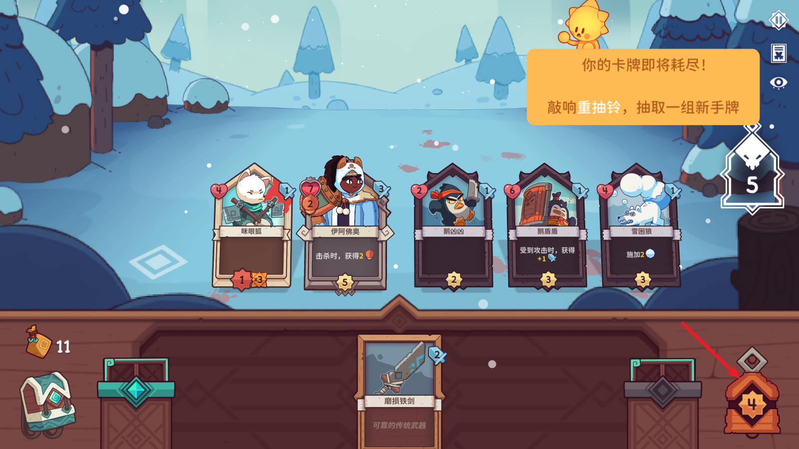 6、当我们能够用的卡牌不够时,点击右下角的铃铛就能够为你补充。