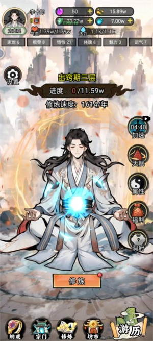 踏入修仙世界的全新征程,你能随心研习各类功法以精进境界,凭借独特天赋开启专属的修真之路,还可创建宗门广纳奇才,逐步提升修为,领略别样的修仙体验。