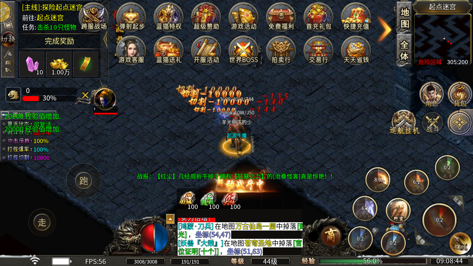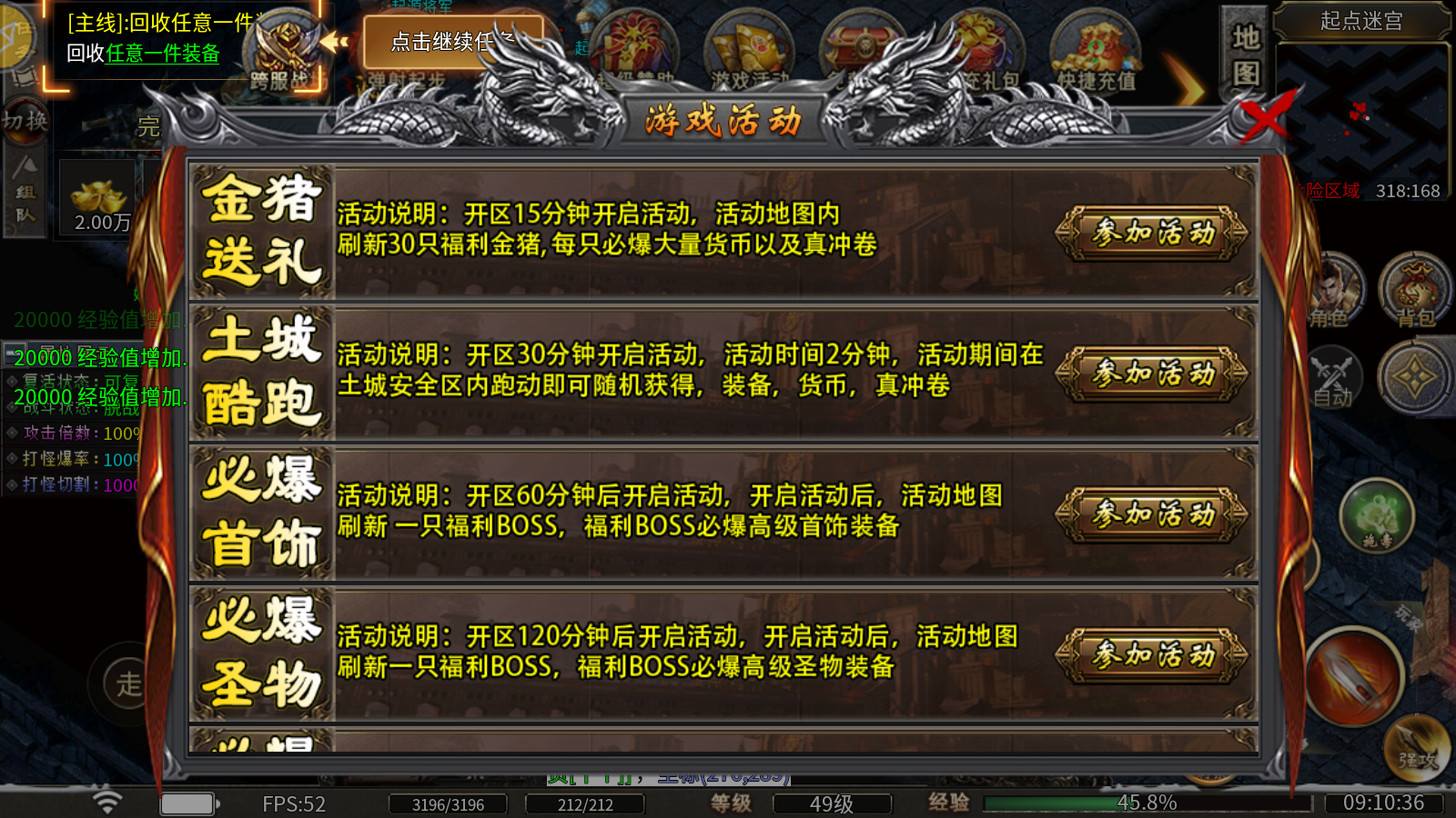 5、必爆法器:开区240分钟后开启活动,开启活动后,活动地图刷新一只福利BOSS,福利BOSS必爆高级法器装备。