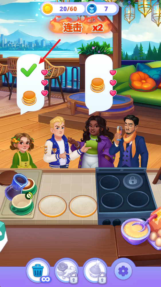 2在招待客人时,记得多打出连击,这样能帮你获取更多奖励,过关时也能得到更多金币。