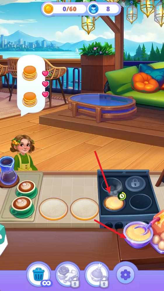2进入游戏关卡后,按照顾客的需求着手准备餐点,通过点击面糊来启动制作流程。