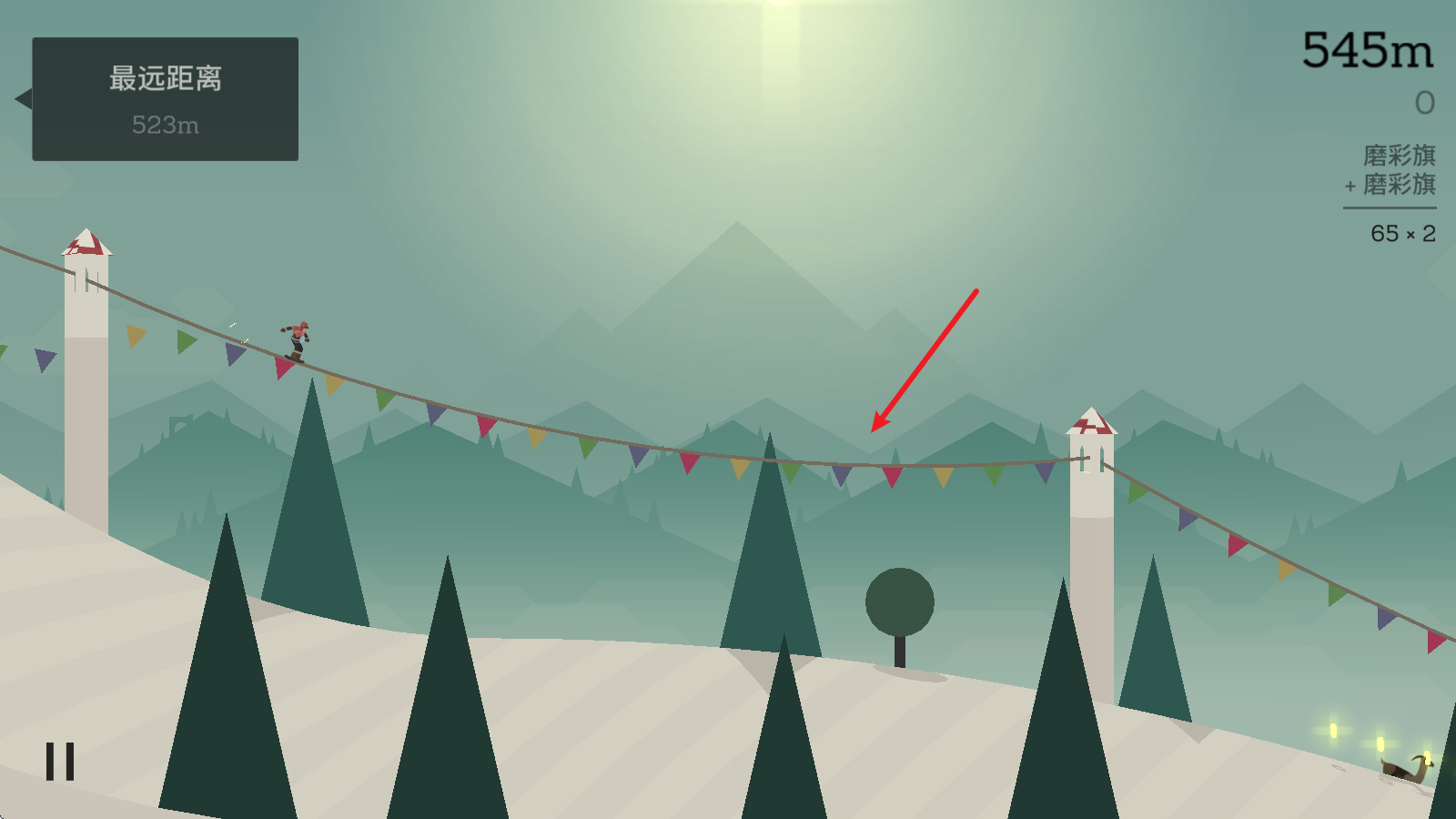 3、在飞跃的过程中长按屏幕即可进行后空翻。