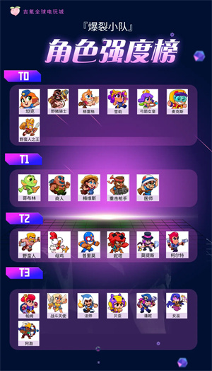 1、T0:坦克,野猪骑士,格雷格,雪莉,弓箭女皇,麦克斯,野蛮人之王(四星)
