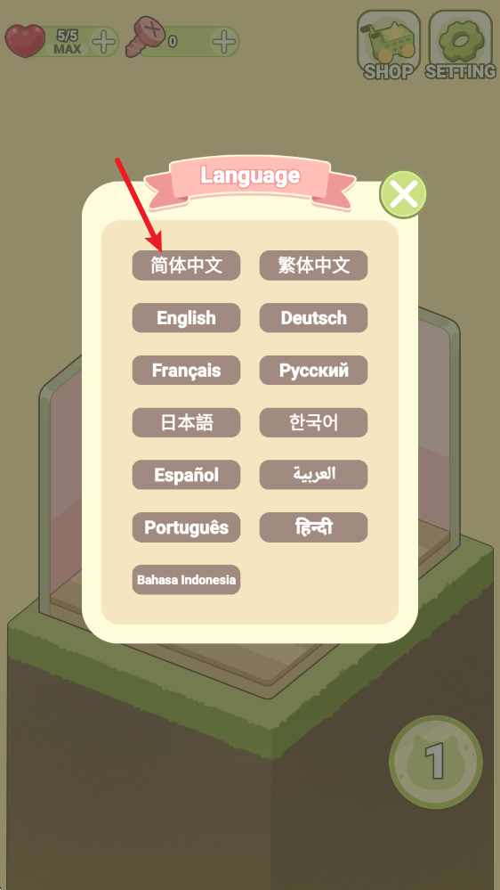 3、进入之后找到简体中文,点击后将会重启游戏。