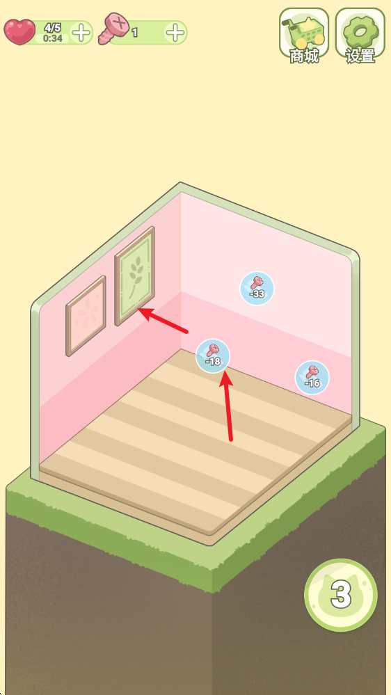 2、数百种可爱的家具物品等你解锁,用它们来不断改造你的房间,将它打造成为你的梦幻小屋。