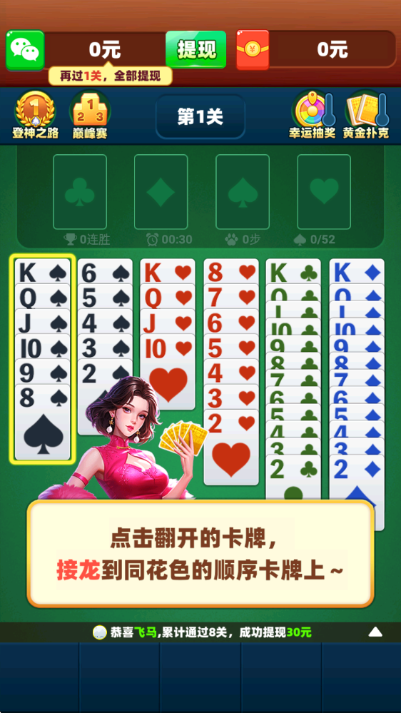 3、成功将所有的扑克牌以接龙的方式收集起来就能够顺利过关了。