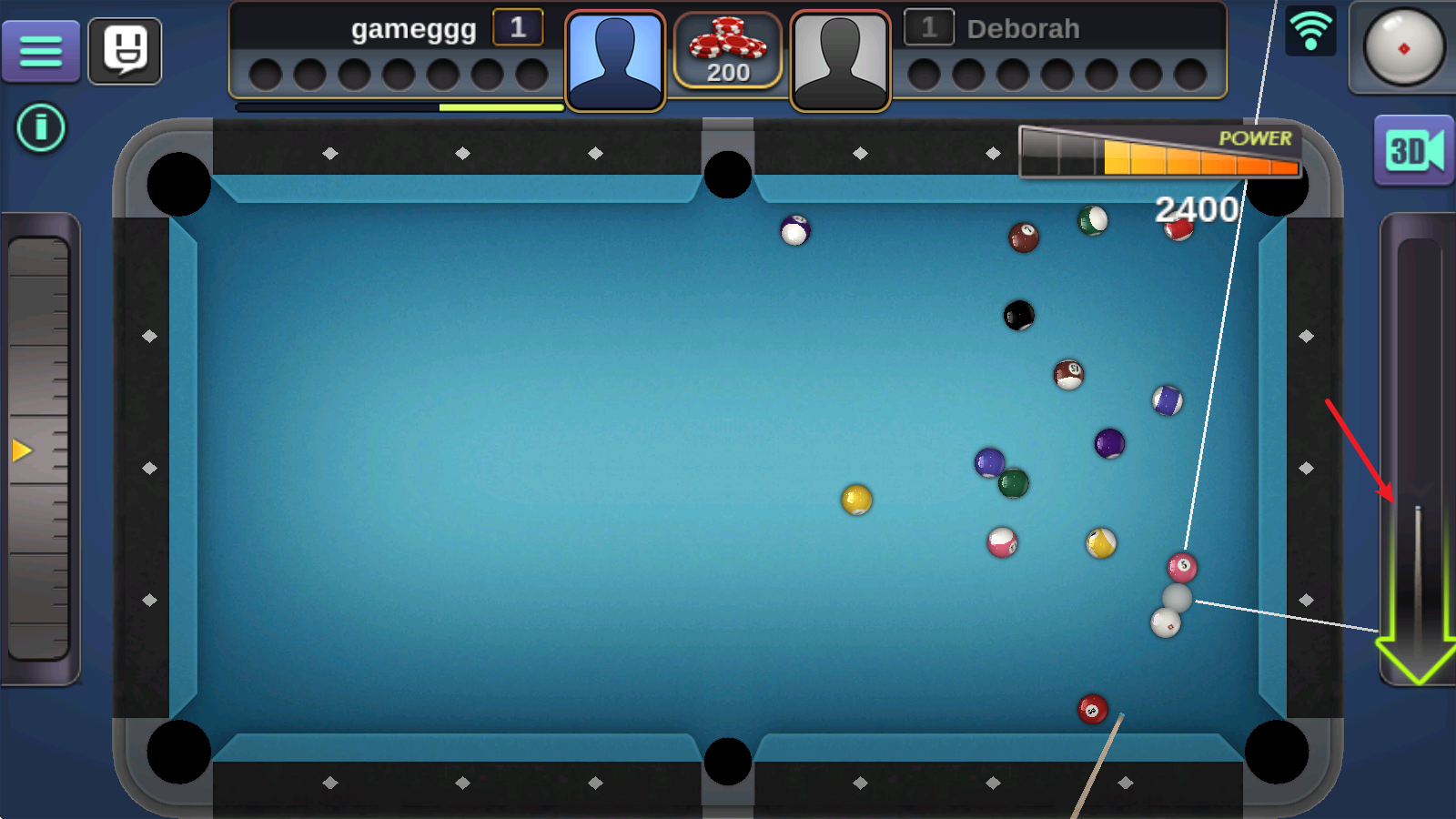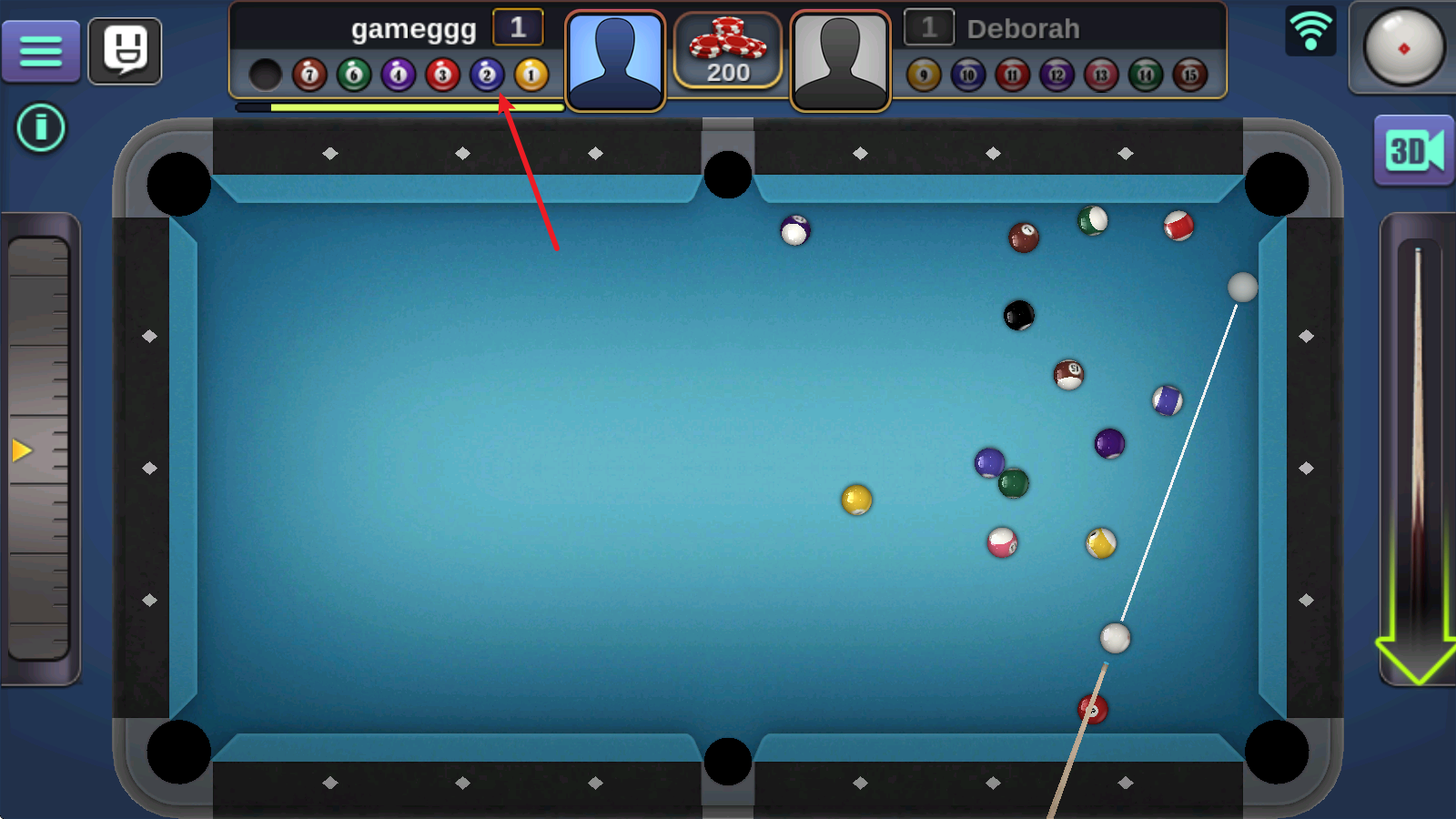 4、选好角度之后,拖动右侧的球杆即可控制力度,松手即可击球。