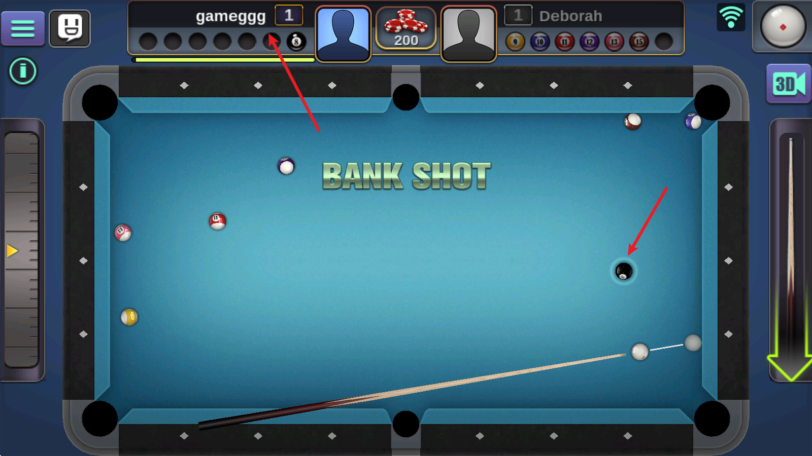 8、当自己的彩球全部进完之后,只需将黑8击入球袋即可获胜。
