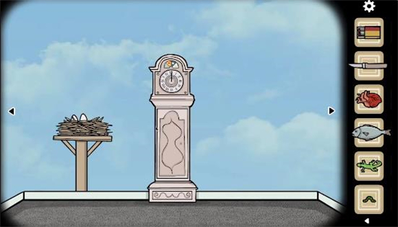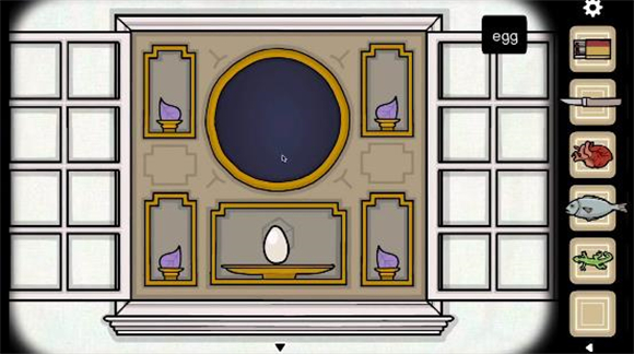 1、到达鸟房间后,先把祭坛上的蛋拿下来。蛋放到鸟巢上,并多次点击每个蛋打破,进入小游戏。小游戏中每次会出现三样事物,我们要做的就是点击从来没有出现过的事物或事物的形态(第一次则是点击不同的一个),全部完成后得到一根羽毛。