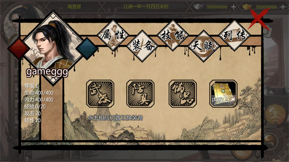 5、开始后点击角色头像可以进行互动,不同的NPC有不一样的功能,有些可以修炼武功,有些可以购买装备和道具。