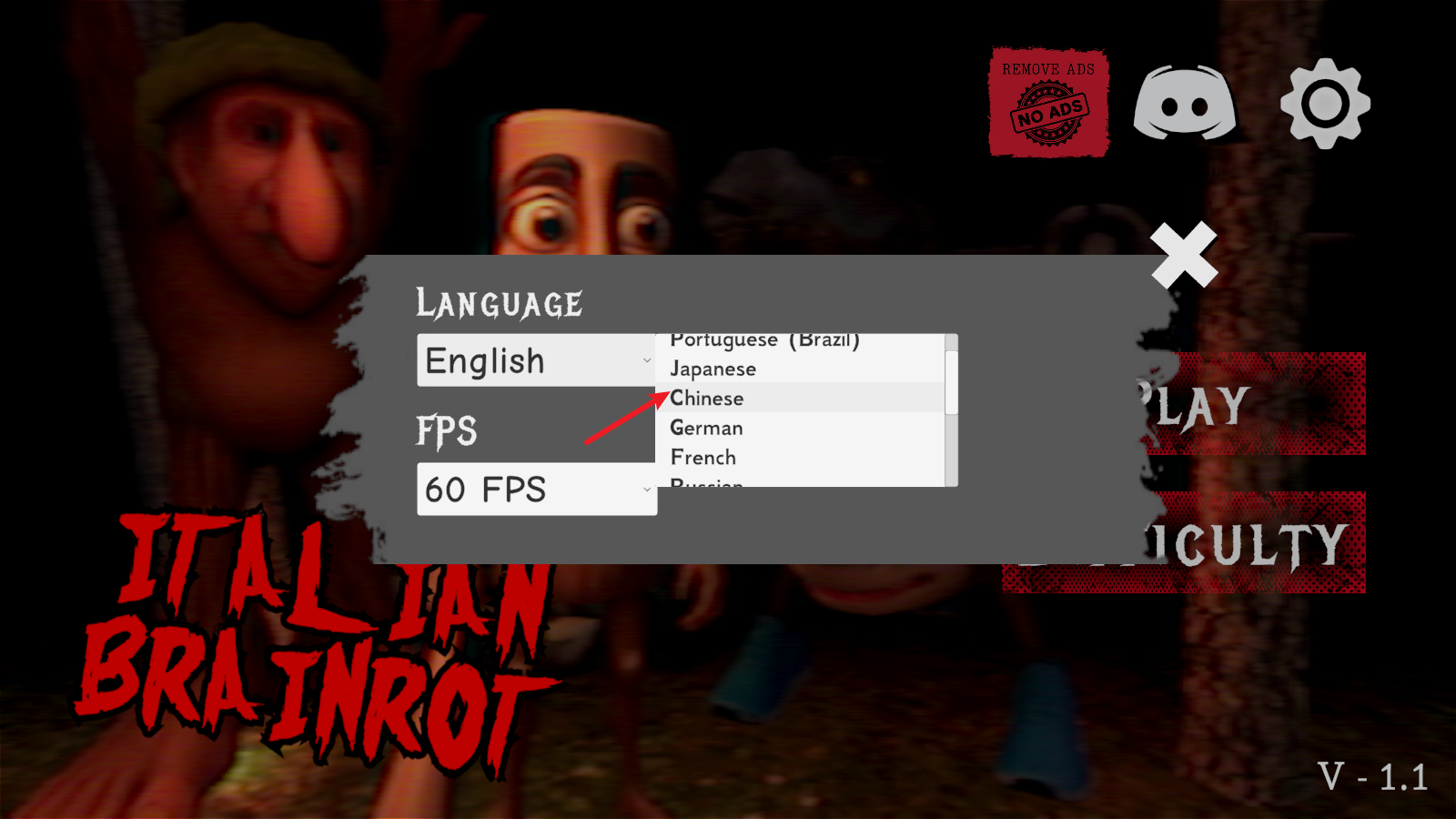 2、随后我们点击这里的ENGLISH,下方还可以调整游戏的帧率。