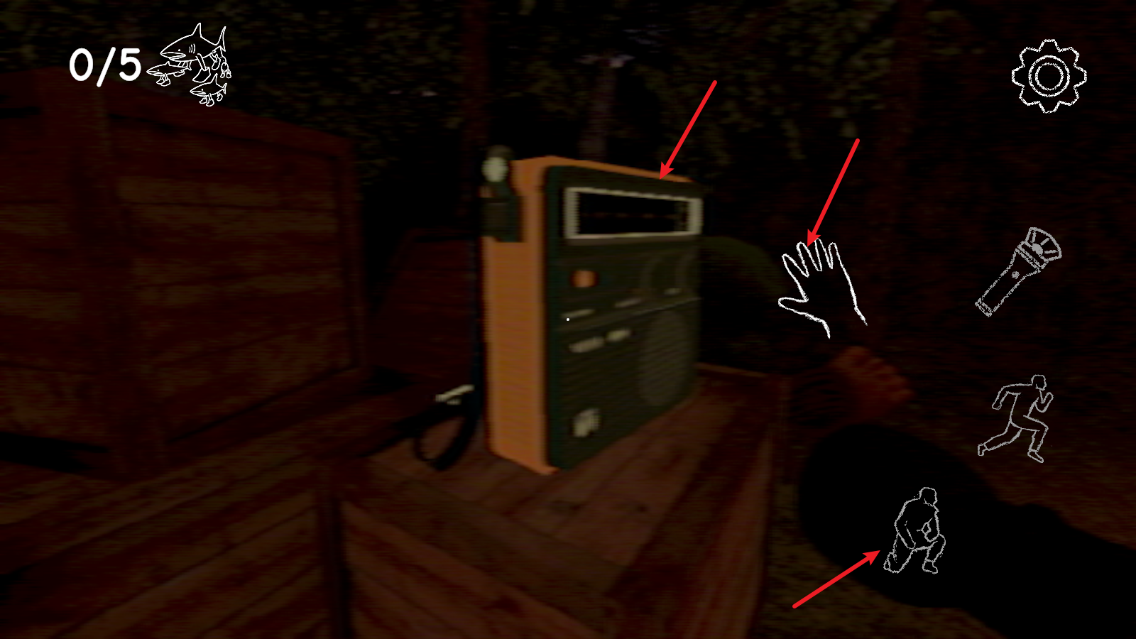 3、当靠近物品后会出现一个交互的小手,点击即可进行交互,部分情况还需要蹲下进行,点击右下角的按钮即可。
