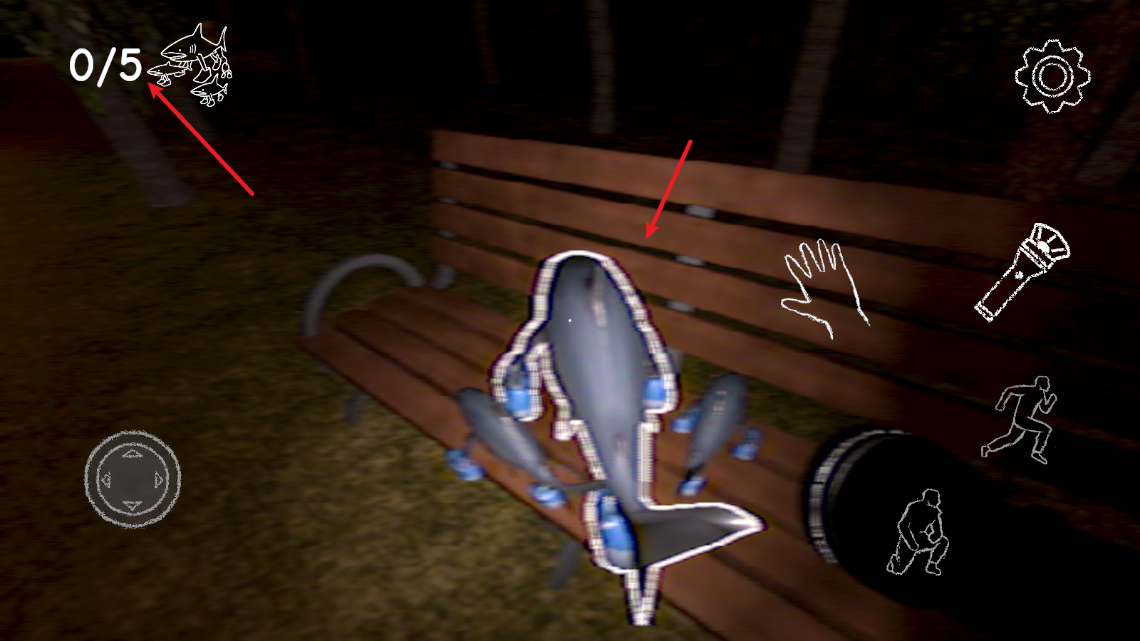 4、靠近人物之后,我们可以点击手电筒照亮它,这样就能够看清了。