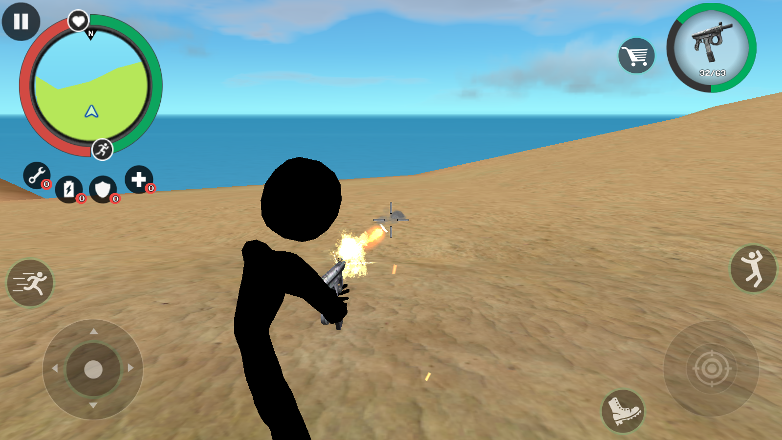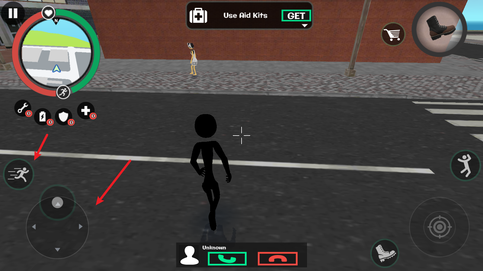1、进入游戏后,左侧摇杆控制火柴人移动,左侧按钮还能加速。