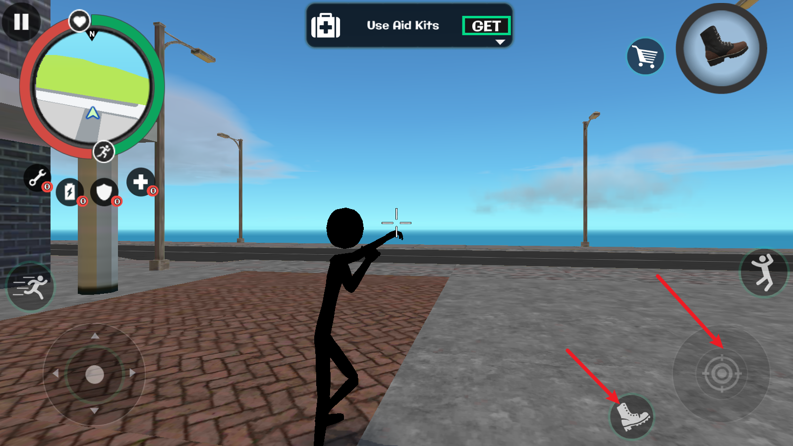 2、右侧的射击键可以进行拳头攻击,下面的按钮可以用脚踢。