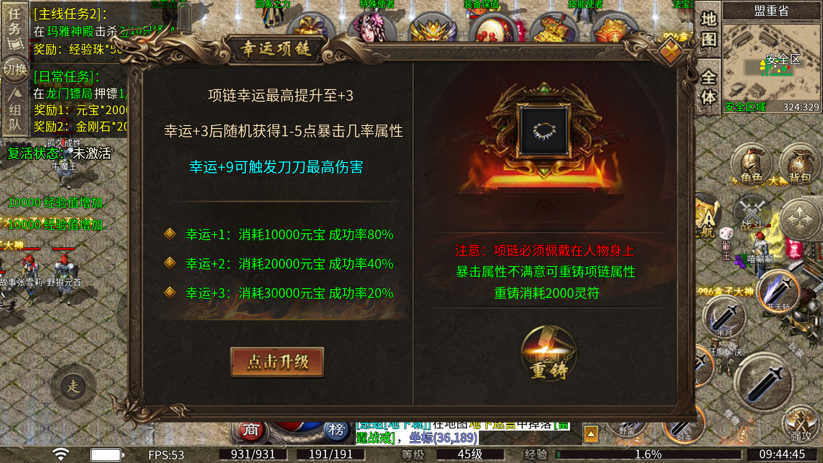 5、幸运项链:项链幸运最高提升至+3,幸运+3后随机获得1-5点暴击几率属性,幸运+9可触发刀刀最高伤害。