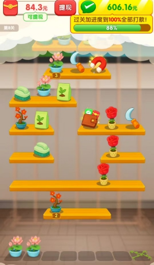 财高八斗红包版,由海南乘易网络科技有限公司推出的一款全新三消闯关游戏。在游戏中,我们将会在架子上看到各种不同的元素,点击相同的元素将它们放置到下方的空地上,凑齐三个就能够直接消除,成功消除所有元素即可过关获得奖励,玩法简单休闲,过关难度也不会太大,可以让你轻松享受到消除闯关的乐趣。