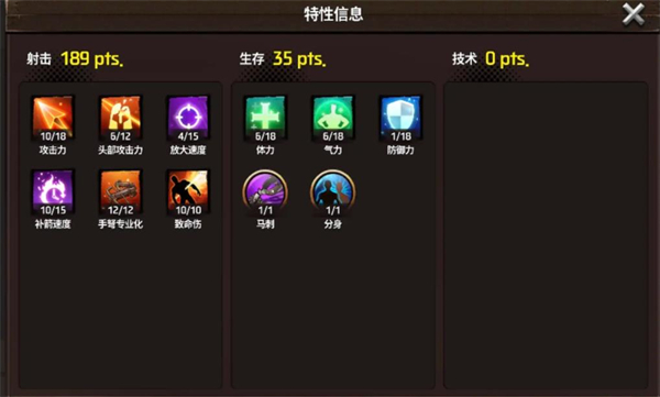 1、极限攻击爆头流派:加点有有两种选择,一种是带冰箭马刺,一种是带马刺+饭团或者分身。如果对自己的手法有信心请选择第二种,致命伤点满,手弩精通点满,补箭速度爆头和攻击力适量,点出马刺分身后剩余点数点一些生存,注意放大速度完全可以不加。防具选择7阶荒野套,词缀全部选择袭击和狙击手,鞋子可以带蜂拥和回避。武器选择2阶压制的战术手弩,终极爆头神器。