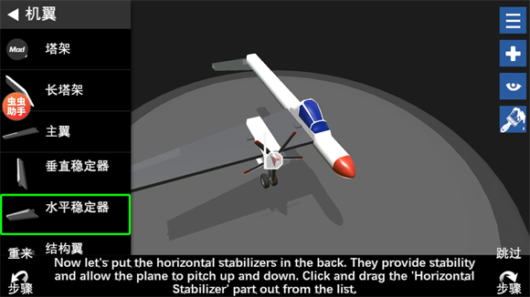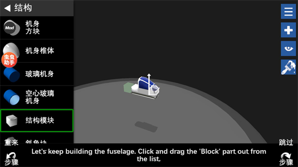 3、机身构建好后点击机翼来构建其中一侧的机翼。