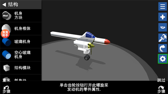 4机翼组装完成后,需安装发动机,可在喷气式与螺旋桨两种类型中选择其一。