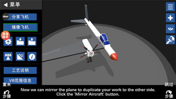 6、放置好之后,点击镜像飞机功能就能把一半复制到另一边,如此一来,一架飞机就创建完成了。