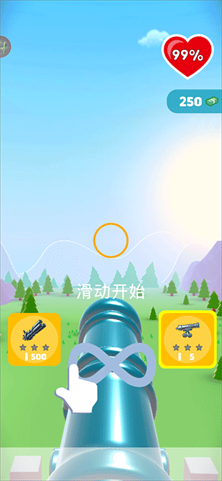 2、通过在屏幕中上下左右的滑动来操控武器的使用