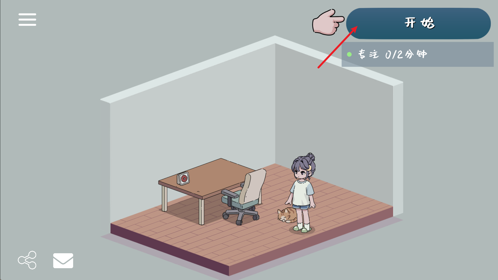 4、倒计时结束后,我们便会进入专注时段,伴随着游戏里舒缓的音乐,开启你的专注任务吧!