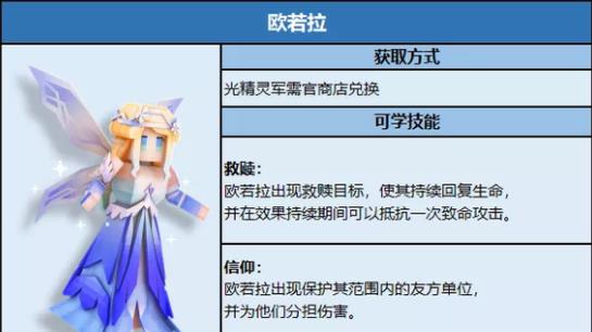 2、奶妈精灵:奶妈精灵已经没得选了,肯定是欧若拉,只不过拿到比较费力。救赎不能对召唤者自己使用,选择一个玩家释放,你可以把它挂在骑士身上,加强版再生+主动底力,奶妈管一个主骑必备。