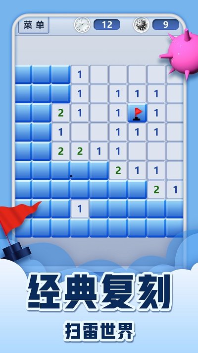 1、创新打造三合一功能按钮,可在插旗标记、视角缩放、方块揭晓这三大核心操作间自由切换,还设有双击取消标记的便捷功能。