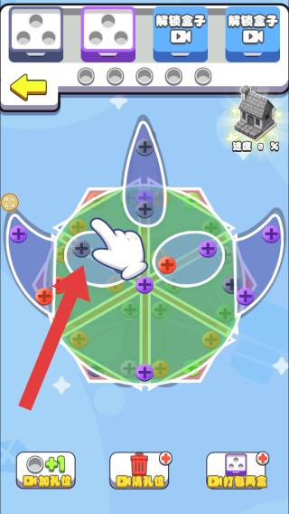 2只需用手指轻点就能完成操作,根据螺丝钉的分布位置和透明板的轮廓形态,有策略地点击拆卸螺丝钉并放入钉盒,当收集到三颗时即可达成消除效果,整个操作过程简单易懂,新手也能快速掌握。