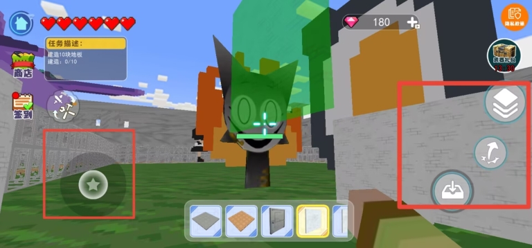 3界面的左半部分展示着角色的当前状态和任务的推进情况,右半部分则是用于建造的功能区,这里有挑选素材以及进行放置操作的相关按键。