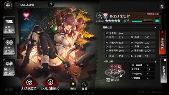 3、游戏中的DOLLS可以自由改造和定制,不同的职能搭配和武器装备可以激发她们的潜力,提升战斗力。