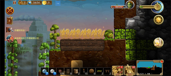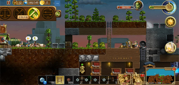 4、要是矮人停止工作了,可以留意左上角的状态:若你选择了“收集物资”模式,矮人就只会专注收集而不会参与战斗;反之,若选择“战斗”模式,矮人则会全力战斗而不会进行采集工作。另外,如果矮人血量不足,他们也会自动停下休息回血,暂时不进行任何工作。