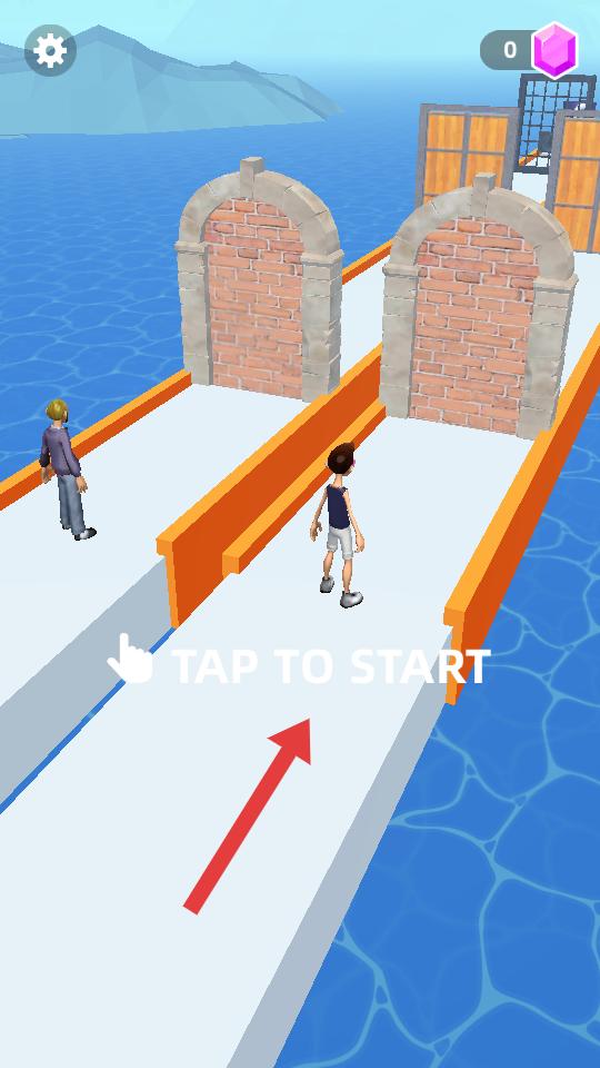 1. 进入游戏界面,能看到砖墙和“TAP TO START”的提示,点击该提示后即可开启拆墙挑战,此时需操控角色朝着砖墙的方向移动,为拆墙做准备。