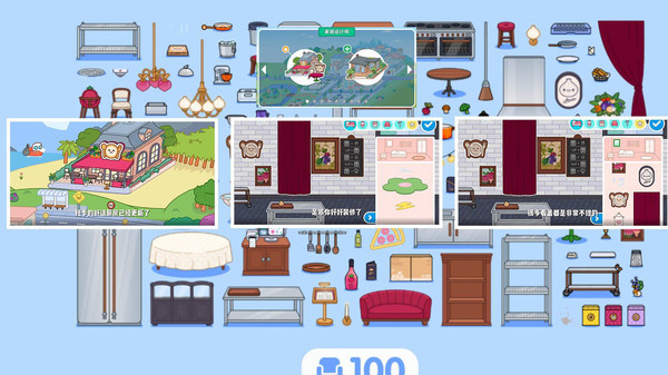 1. 小镇里的每个房间装饰,玩家都可以自由搭配。